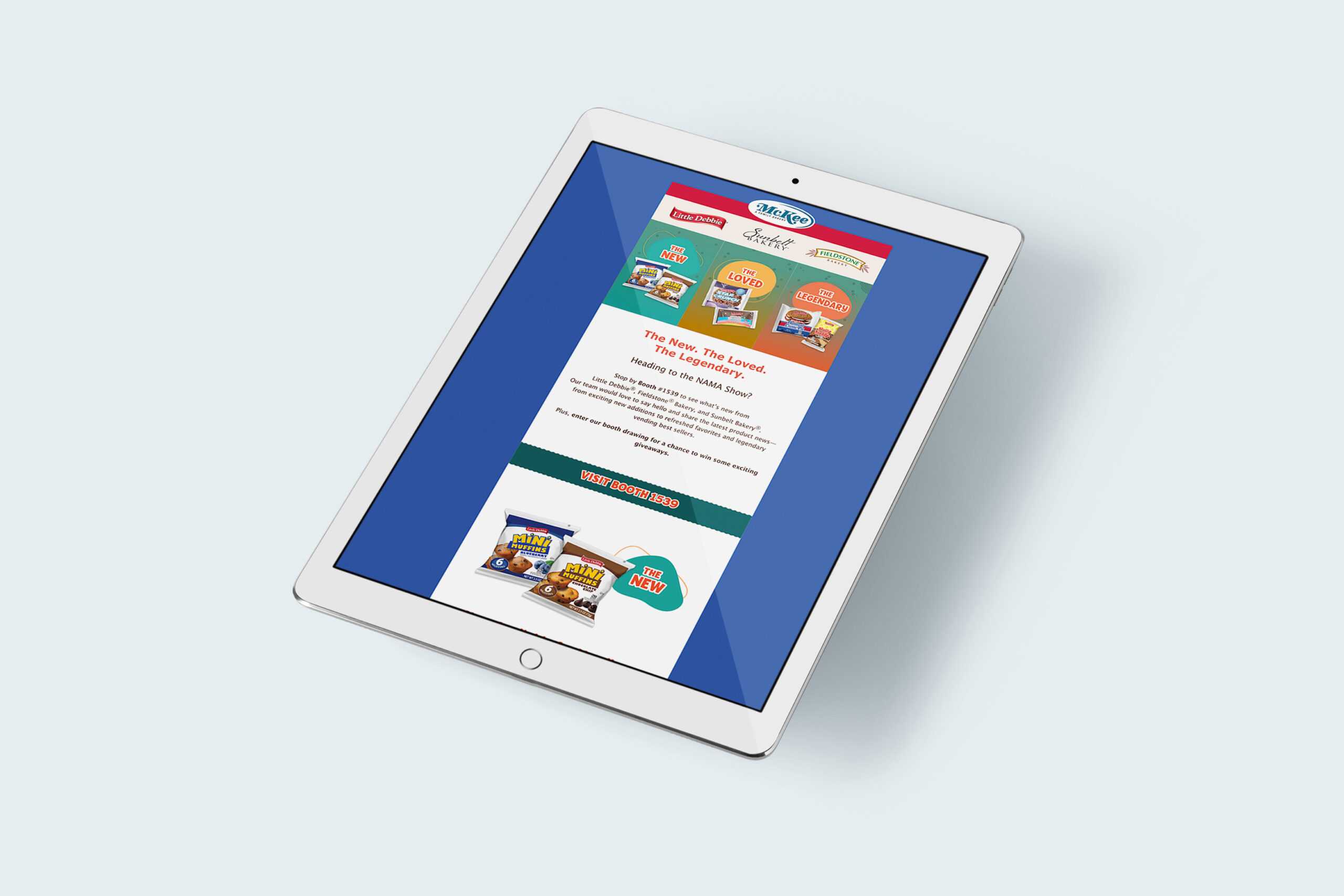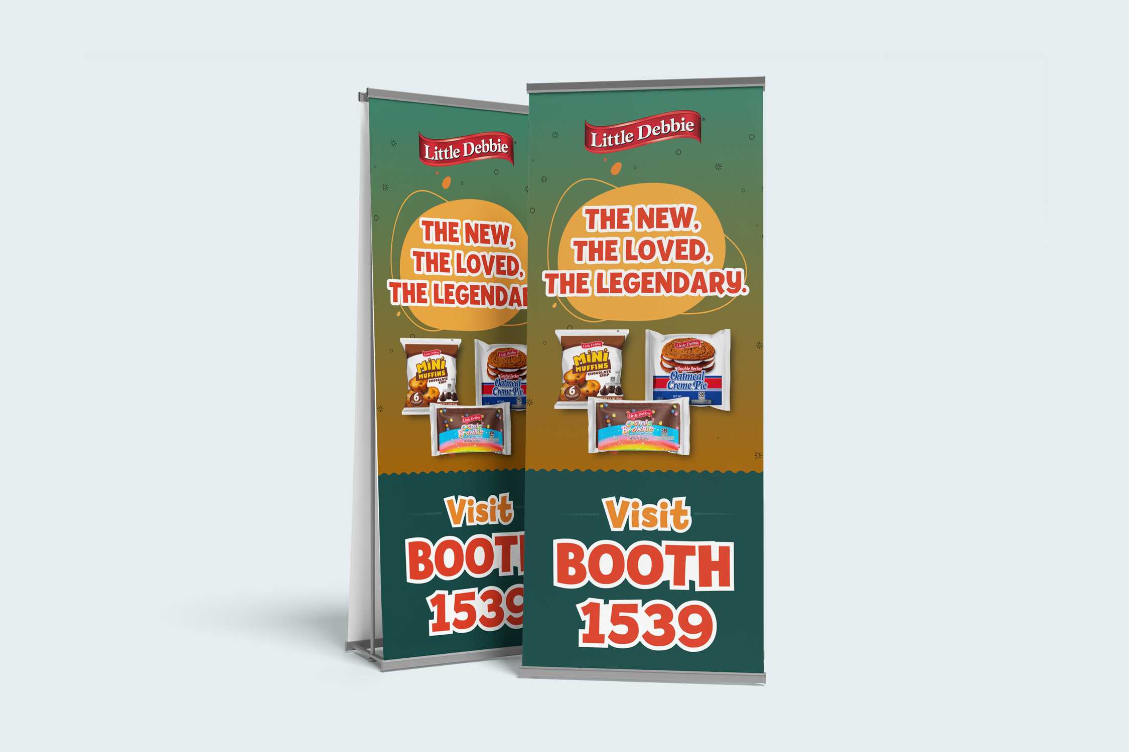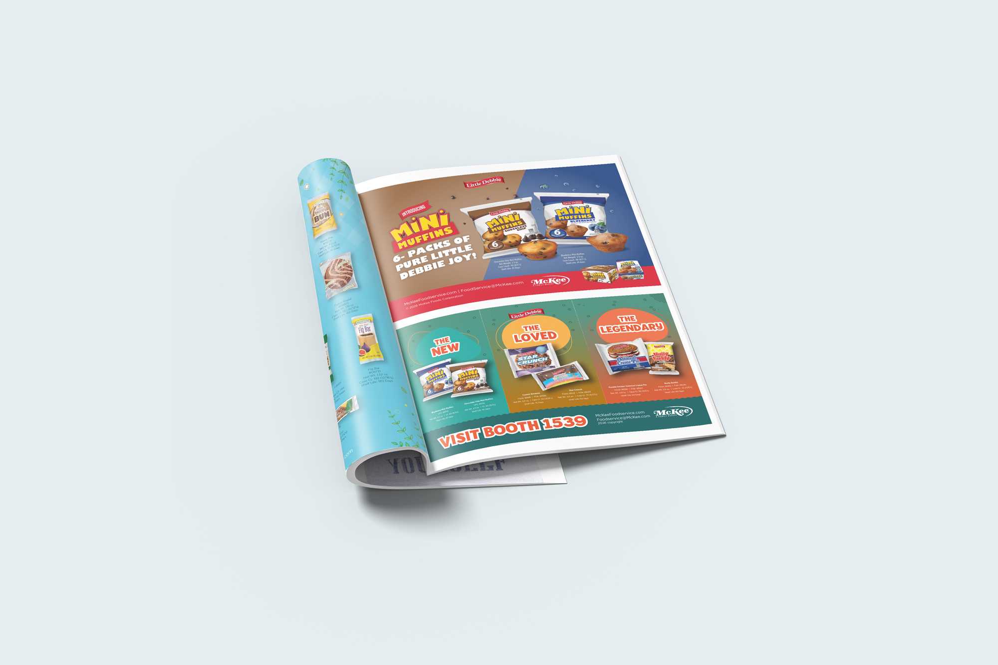 For the NAMA Show, we created marketing materials that helped Little Debbie stand out, including magazine ads, email newsletters, digital images, web banners, and custom sticker prints. Each piece was designed to deliver a consistent brand presence and a memorable experience for attendees.