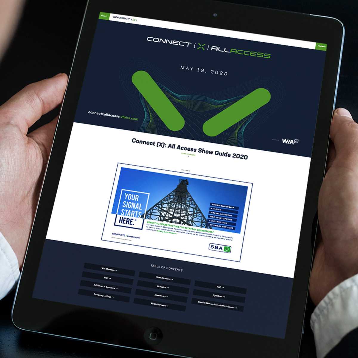 Connect (X) is the only business technology event in North America that unites the industry stakeholders who deliver infrastructure solutions for ubiquitous connectivity. In 2020 — Riverworks utilized our very own custom digital platform to publish the 2020 Show guide for WIA’s Connect(x) Virtual Event.